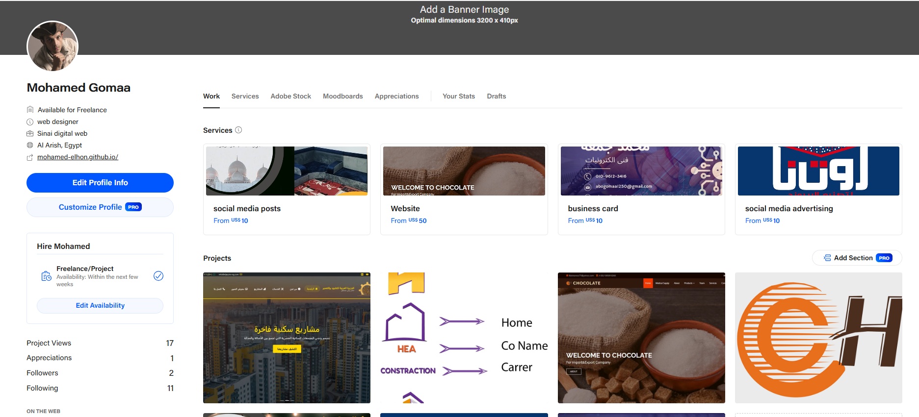 تصاميم متعددة من كروت شخصية , بروفايل للشركات , لوجوهات تحسين وتطوير وتصميم